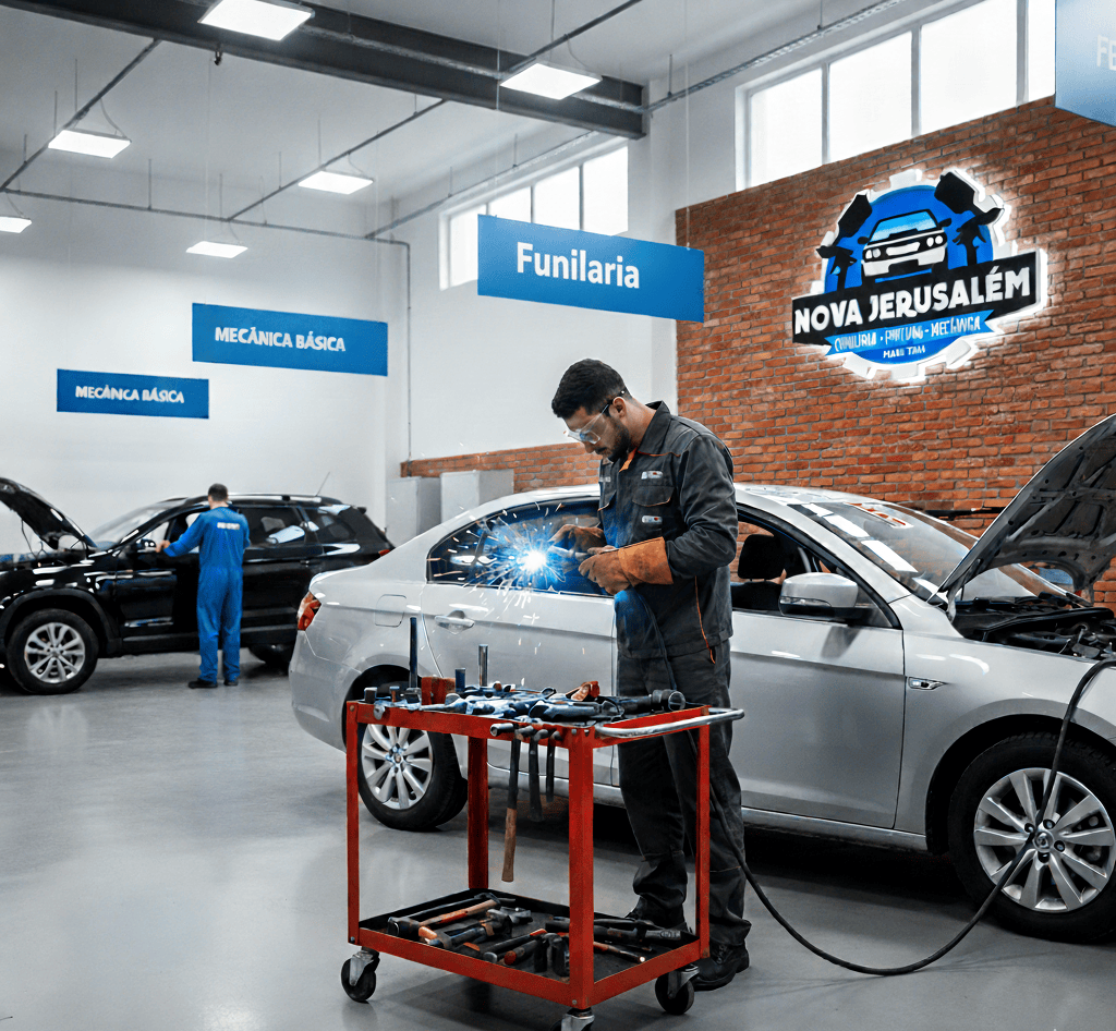 Com o passar dos anos, investimos em estrutura e tecnologia. Hoje contamos com duas cabines de pintura modernas, uma área completa de estética automotiva e um laboratório próprio de tintas, onde desenvolvemos cores com precisão utilizando Sikkens, uma das melhores tintas do mundo.